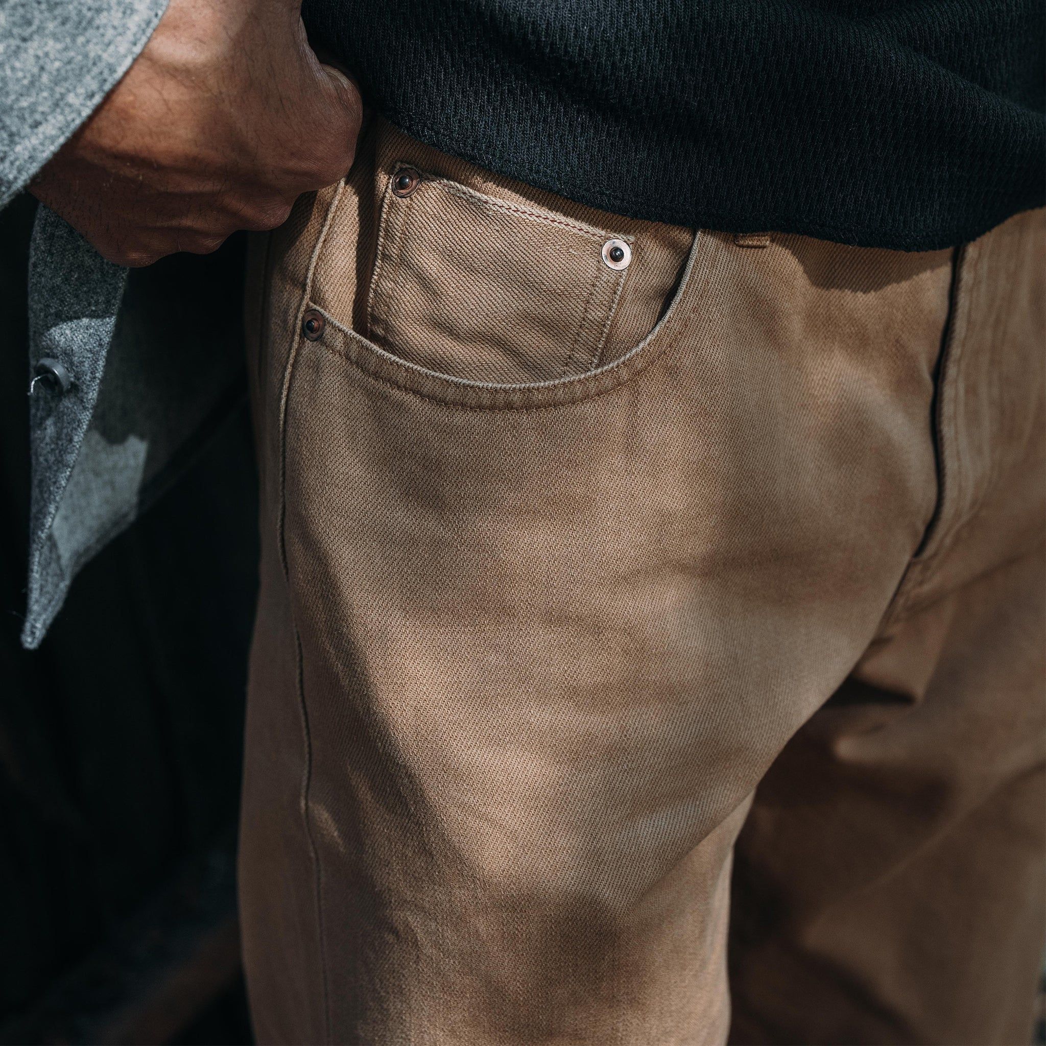 The Democratic All Day Pant in Washed Tobacco Selvage from Taylor Stitch